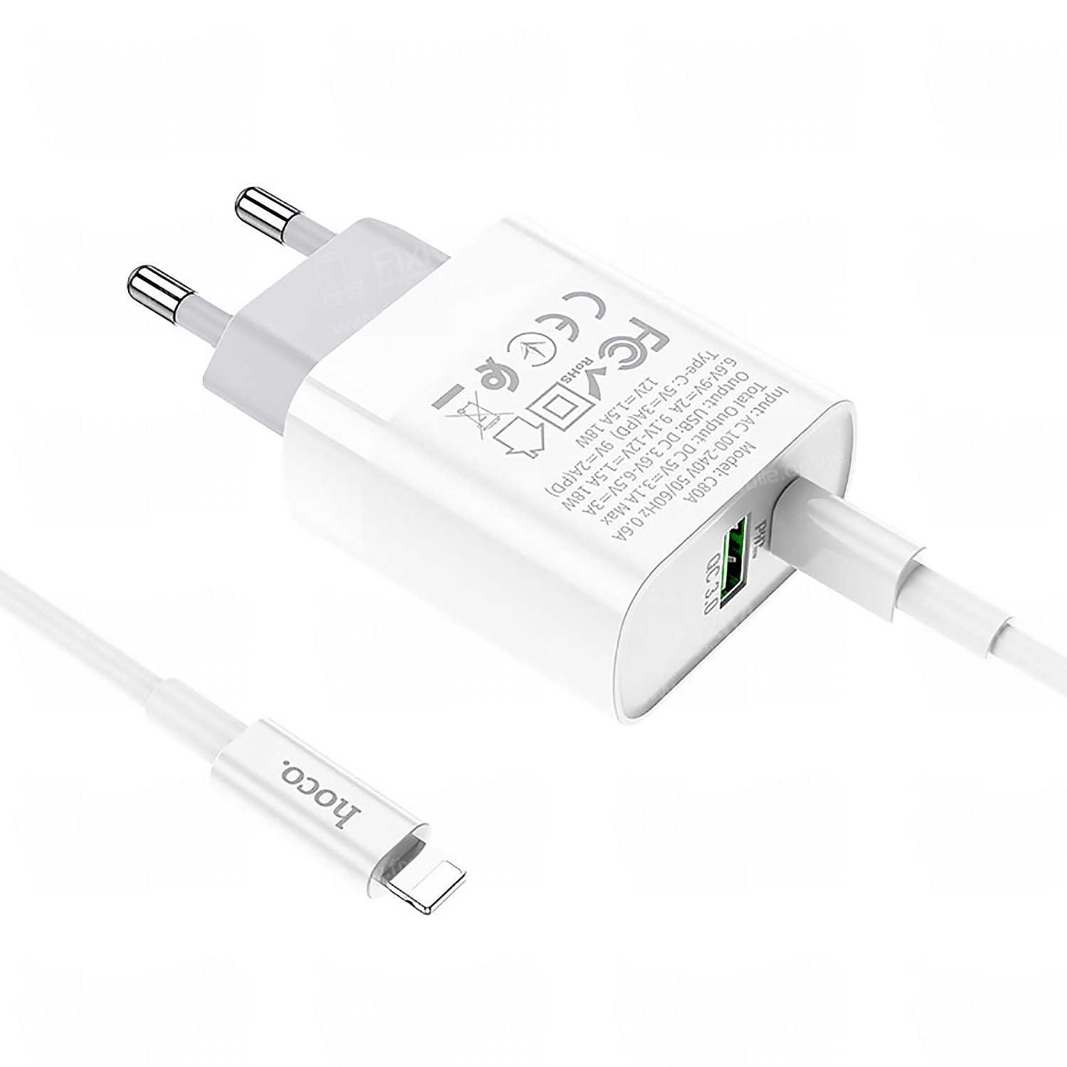 Сетевое зарядное устройство Hoco C80A USB/Type-C с кабелем для Apple (Lightning - Type-C) (белое)